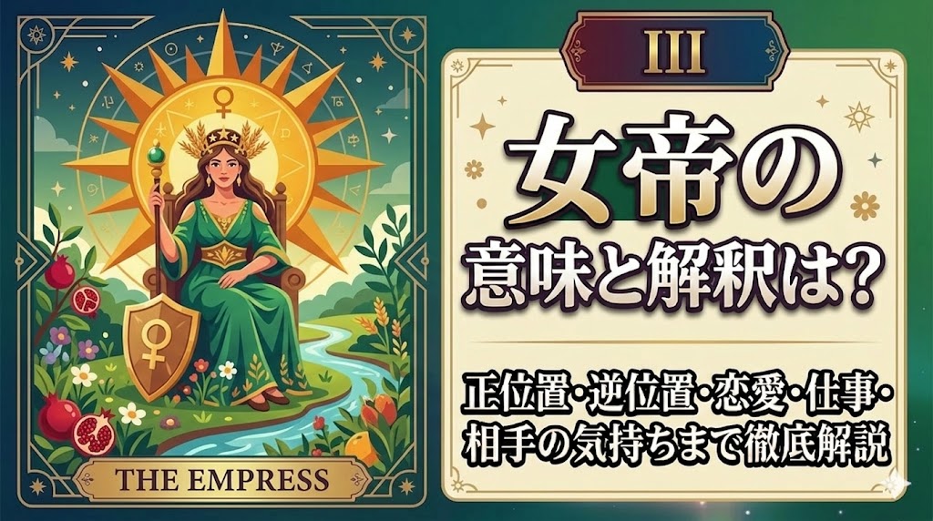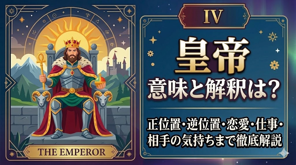 この記事では、皇帝が持つ本来の意味から、恋愛や仕事、お相手の気持ちまで、日々の生活に寄り添う言葉で紐解いていきます。今のあなたが抱える迷いを自信に変えて、一歩踏み出すためのヒントを一緒に探してみませんか。